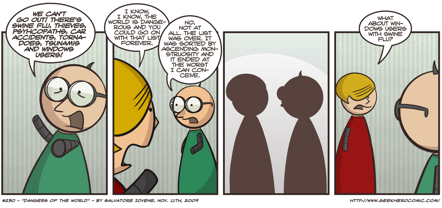 Geek Hero is a comic about Randall (friends call him Randie), a hardcore geek with the sweetest heart. Randall is an Open Source developer for a large company, a Debian user and sometimes doesn't relate well with his peers! Geek Hero is translated to German at Linux Community.